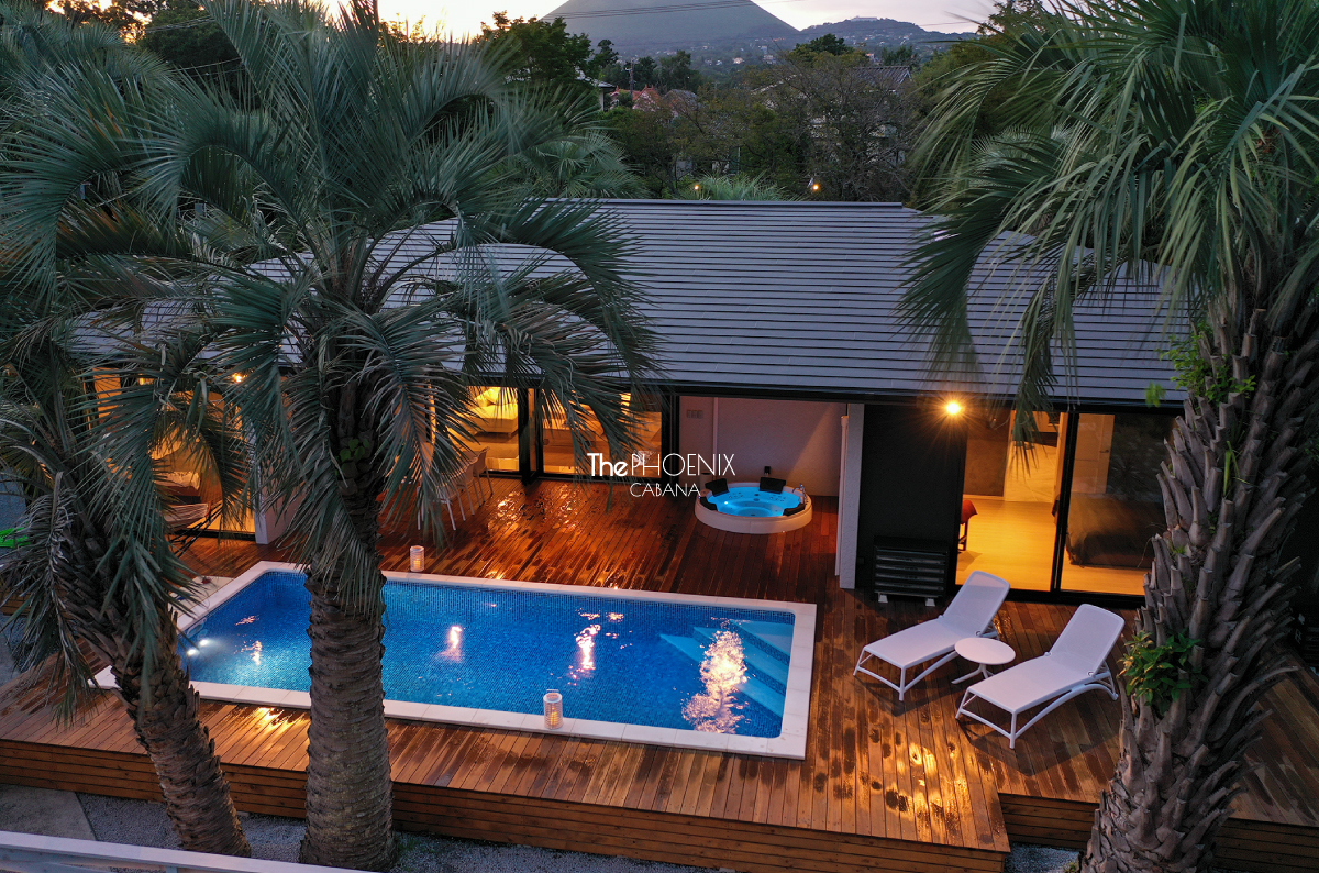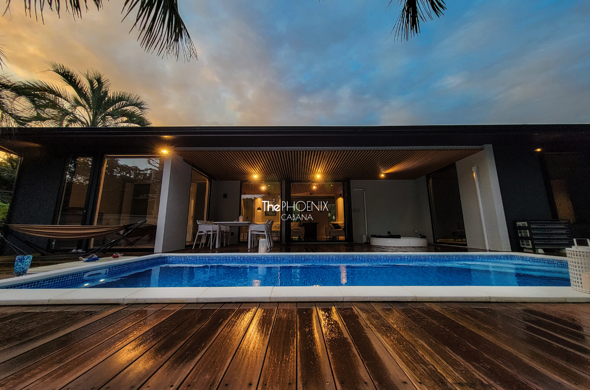 森と海が隣接するナショナルパーク「伊豆高原」に佇む「The PHOENIX」。800坪を超える敷地には、大木の育つ美しいガーデンと2022年8月に竣工したばかりの平家の優雅なヴィラが建つ。