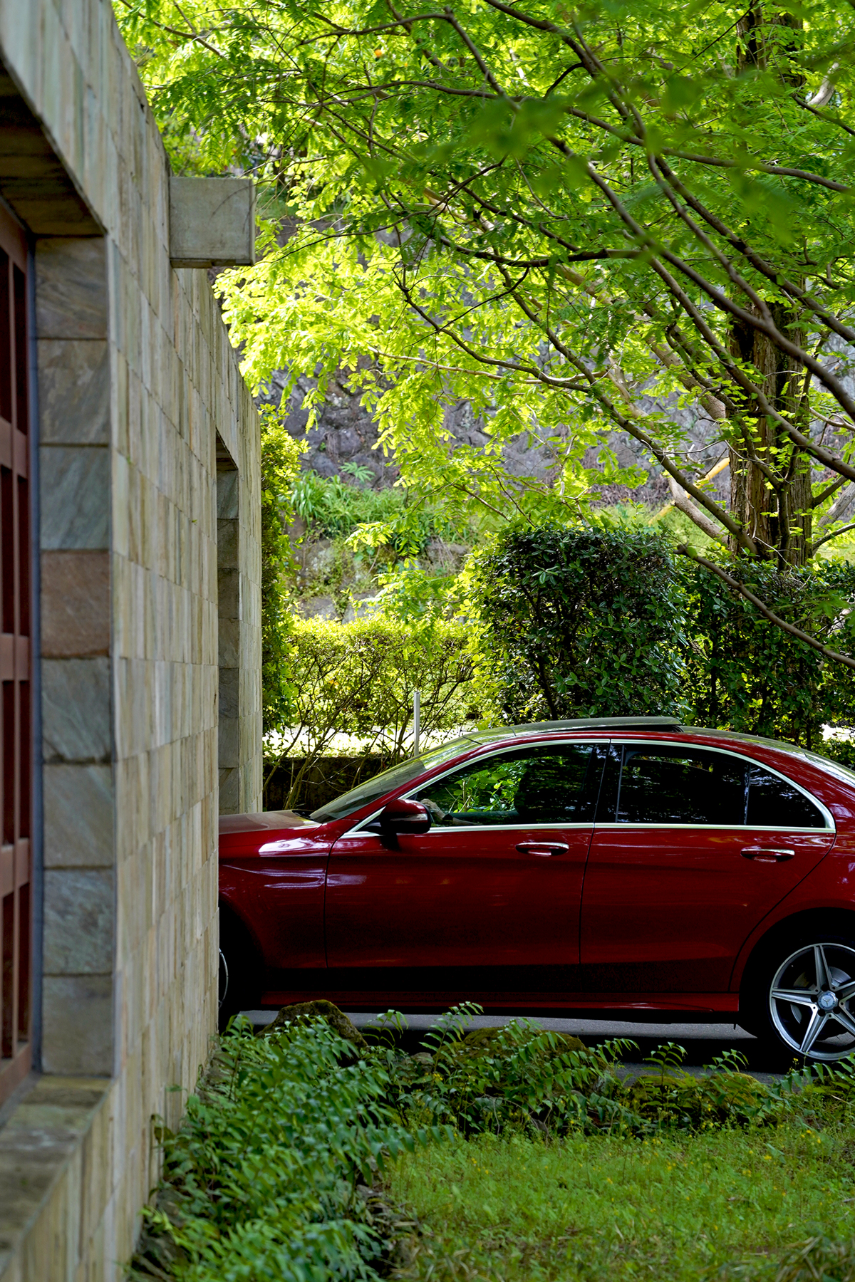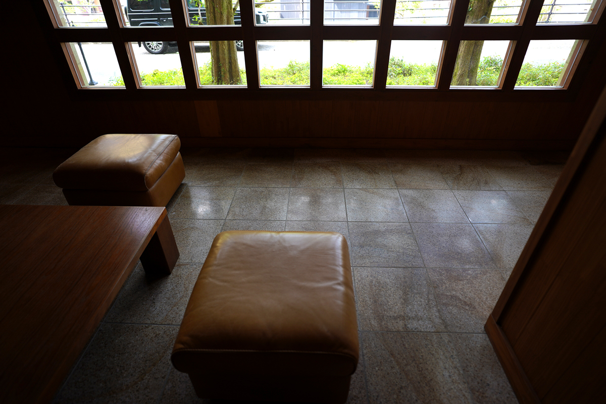 部屋からは南北に穏やかな眺めが広がる、南側には竹林とその先にそびえる溶岩の壁、北側には、メタセコイヤの柔らかな葉を揺らすそよぎの向こうに清流のせせらぎがひかる。北側の春には川辺を覆う桜と菜の花を足元に眺め、冬には目の前に現れる湯河原の山並みが美しい。梅雨時には川面を飛び交うホタルをめでる。南側の竹林は一年を通して瑞々しく竹の緑が柔らかい風景を造っている。四季折々の日本の風流を感じられる繊細な眺めといえるだろう。