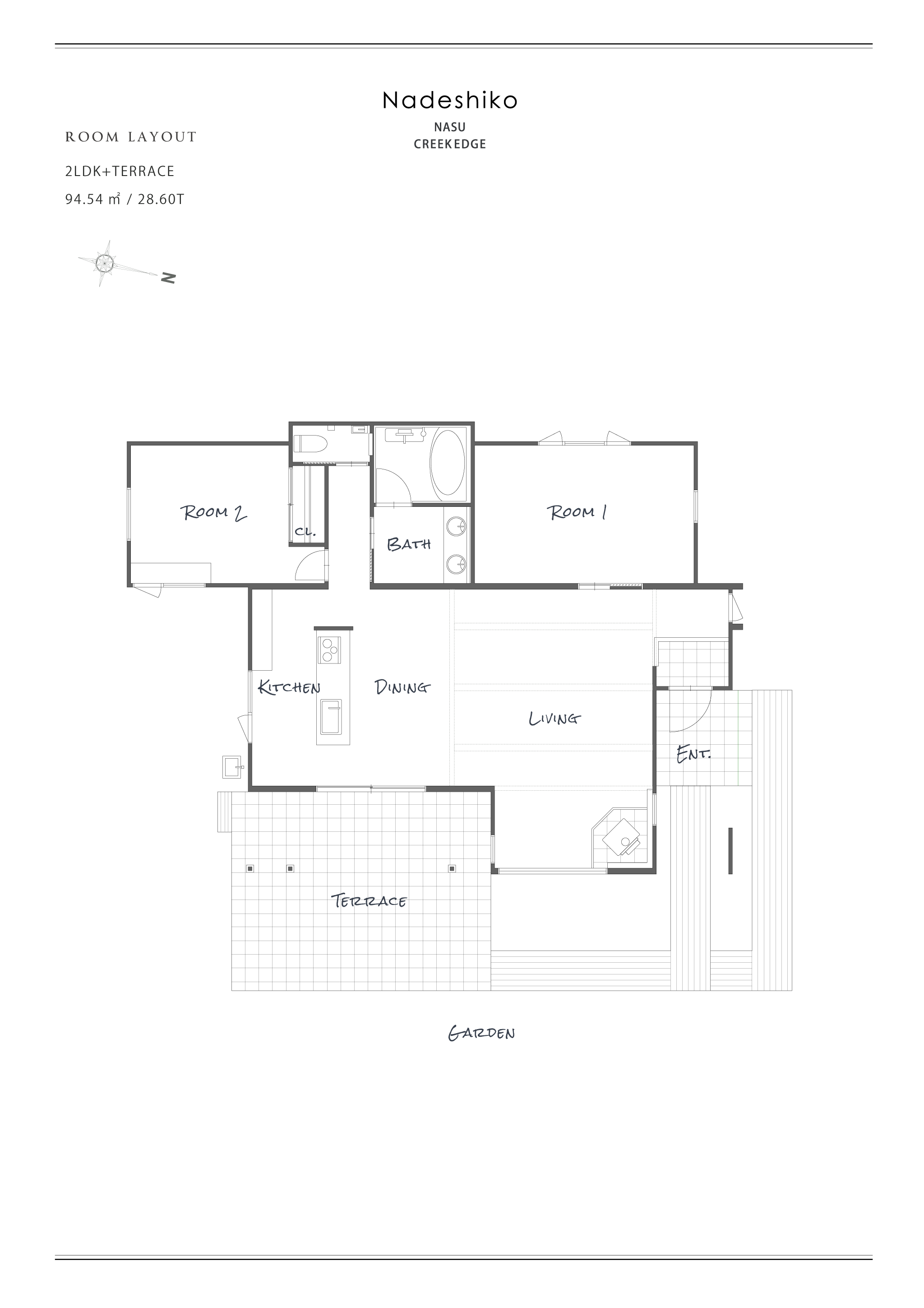 雄大な那須連山を頂きに関東平野に向け緩やかに傾斜する広大な森をフィールドにしたマウンテンリゾートコミュニティの一角にあるクリークエッジに建つ柔らかな光に包まれるコンパクトな平家ユニット。プライベートヴィラ、バケーションレンタルのどちらでも使える選択の幅のあるユニット「NADESHIKO」をご紹介します。