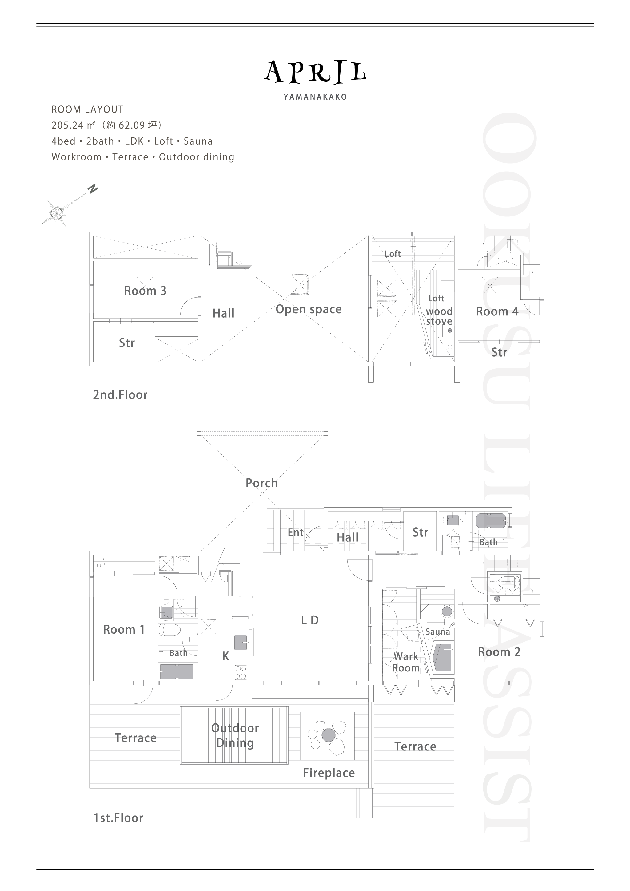 | 間取り | 4BED・2BATH・LDK・ワークルーム・ストレージ・サウナ・ロフト |