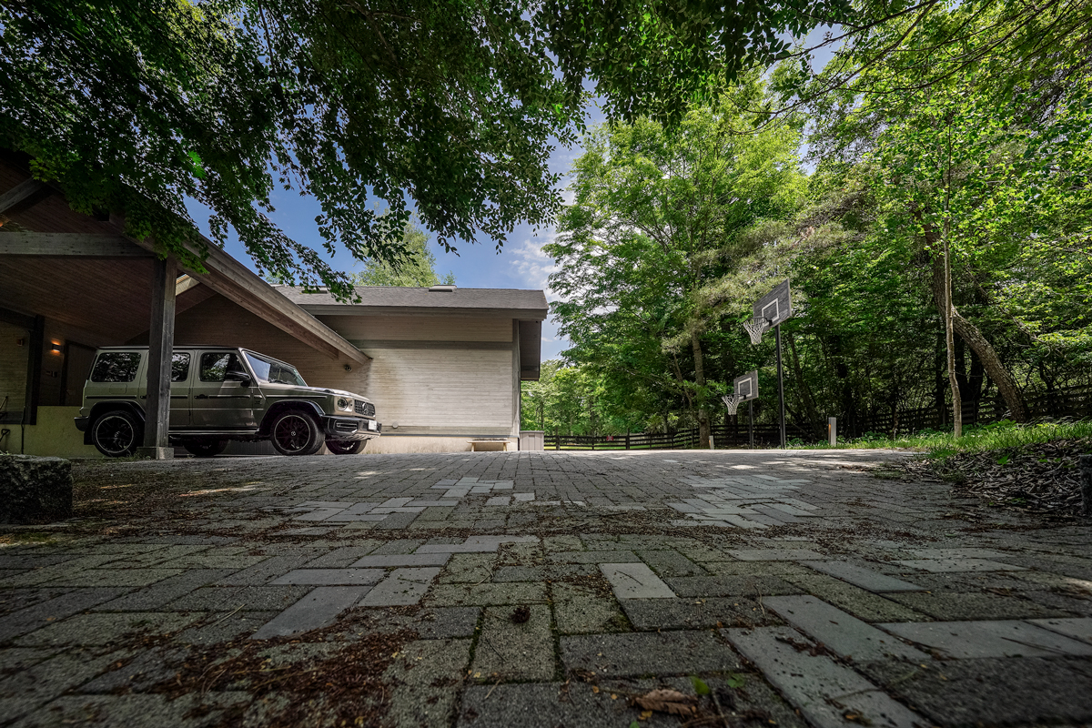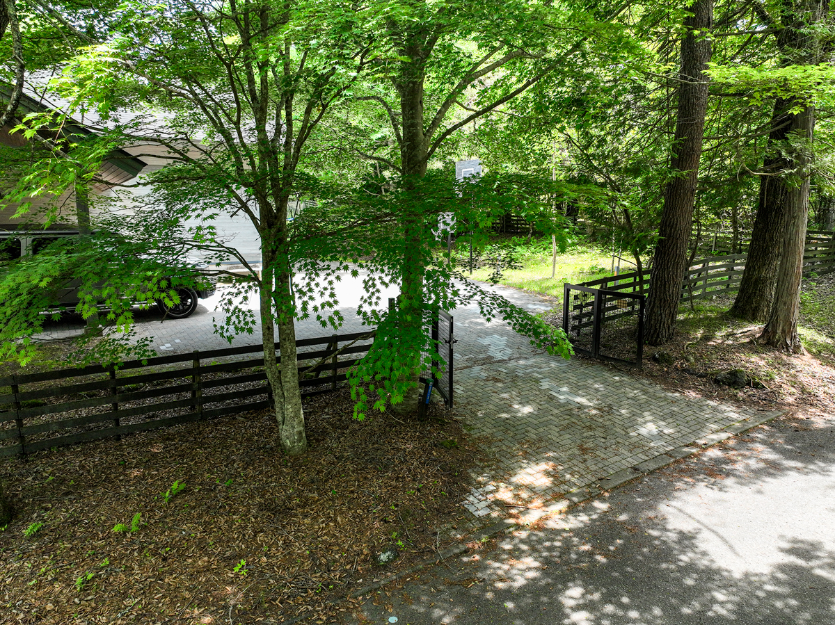 本物件は、富士山麓の美しい針葉樹・広葉樹が自生する森に抱かれた、極めて静謐なロケーションに位置している。車の往来はほとんどなく、プライベート感が非常に高い。山中湖湖畔まで約650mと近く、湖や富士山を訪れる拠点としても申し分ない立地である。また、このエリアは上質な別荘が適度な距離を保って点在し、周囲の雰囲気そのものが滞在価値を高めている。