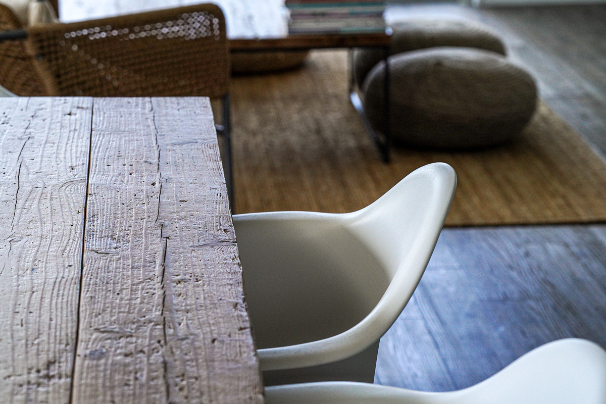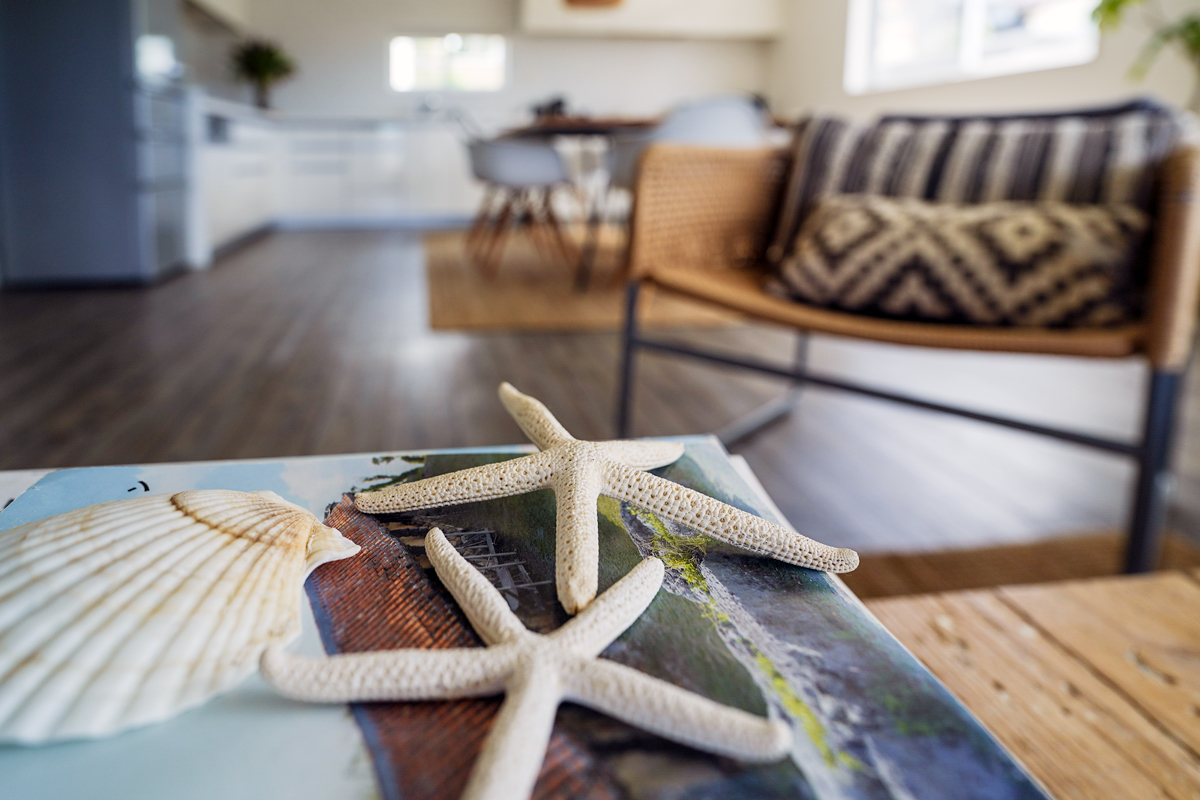 ラスティクに仕上げ板目調の床とオフホワイトの壁が、清潔感とリラックスした空気を室内に醸し出す。各部屋に配されたシーリングファンが南国特有の緩やかな風を感じさせ、艶やかな白タイルを基調としたバスルームが高い衛生感を保つ。
