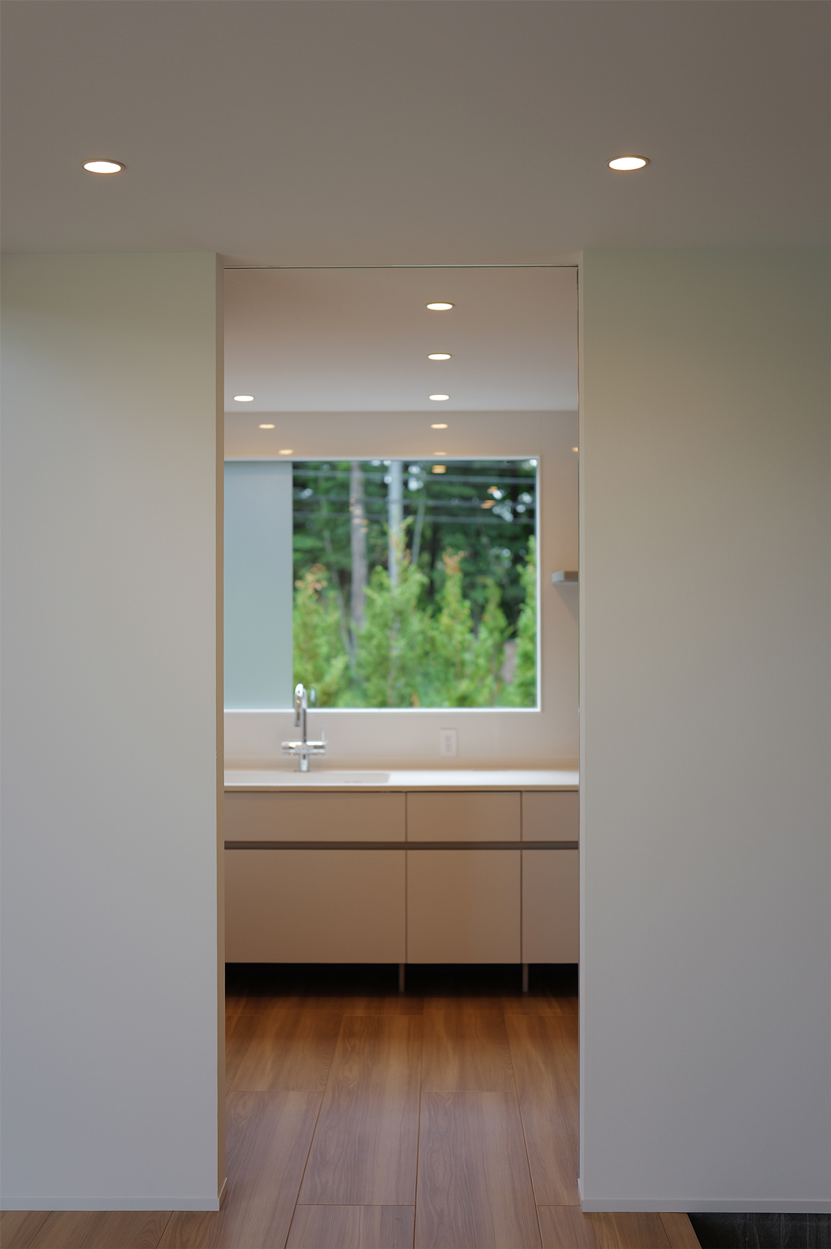 吹き抜けを活かした構造により、空間に奥行きと広がりを持たせており、室内には常にやわらかな光が差し込む。ホワイトとナチュラルウッドを基調とした内装は、清潔感と柔らかさを兼ね備え、心地よい時間を演出する。