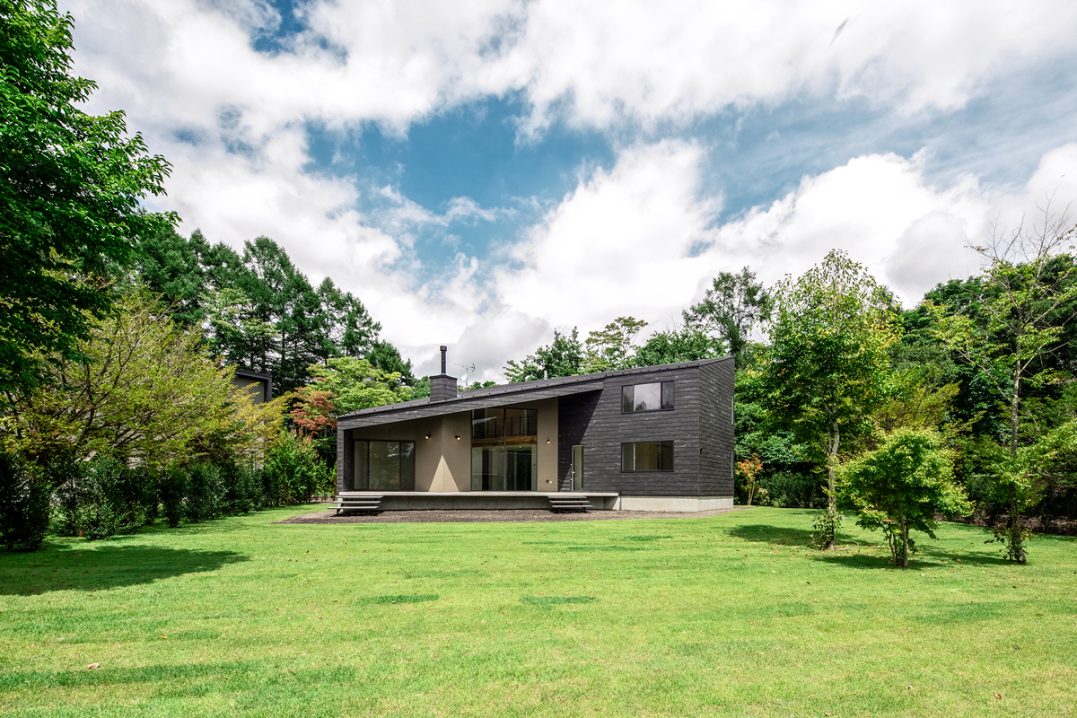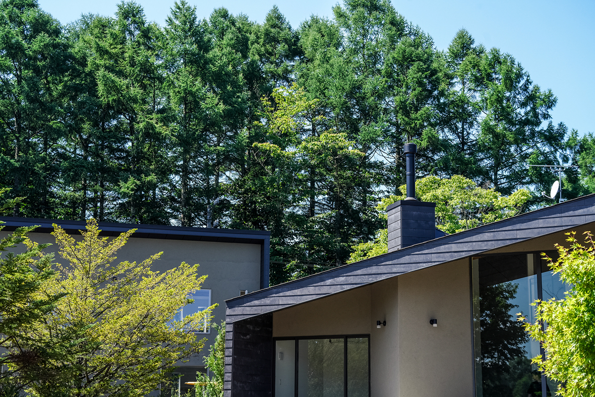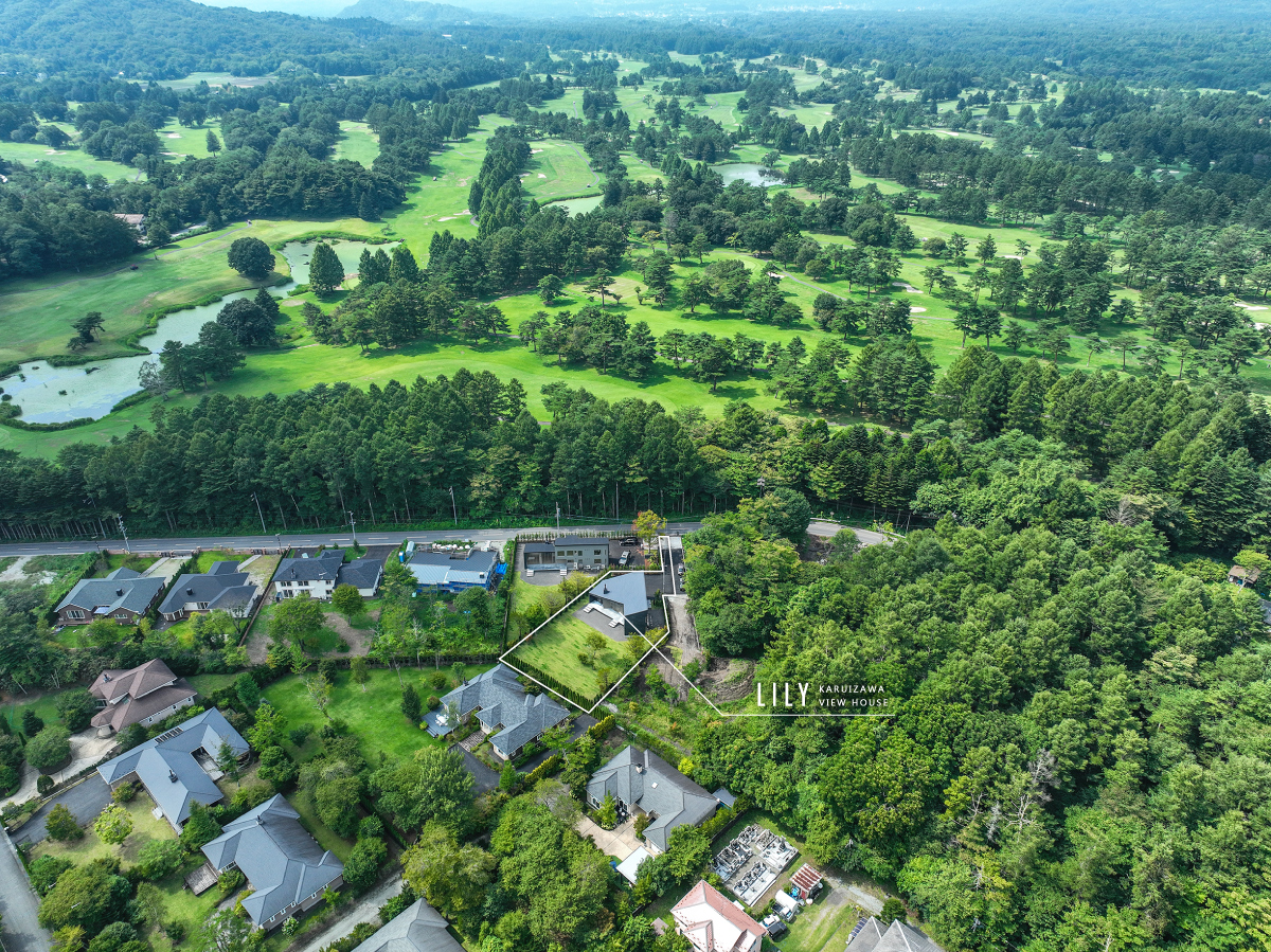 南軽井沢のなだらかな高原地に誕生した新築戸建「LILY」。正面に軽井沢72ゴルフ南コースのフェアウェイと山並みを望み、日当たりと景色に恵まれたロケーションにある。大きく張り出した屋根と全開口の窓が、内と外をつなげ、四季の景観を住まいの一部に変える。設計はあくまでシンプルに、空間は豊かに。南軽井沢の静けさと自然に寄り添うこの住まいは、都市と軽井沢を行き来する人にとって理想的な拠点となるだろう。