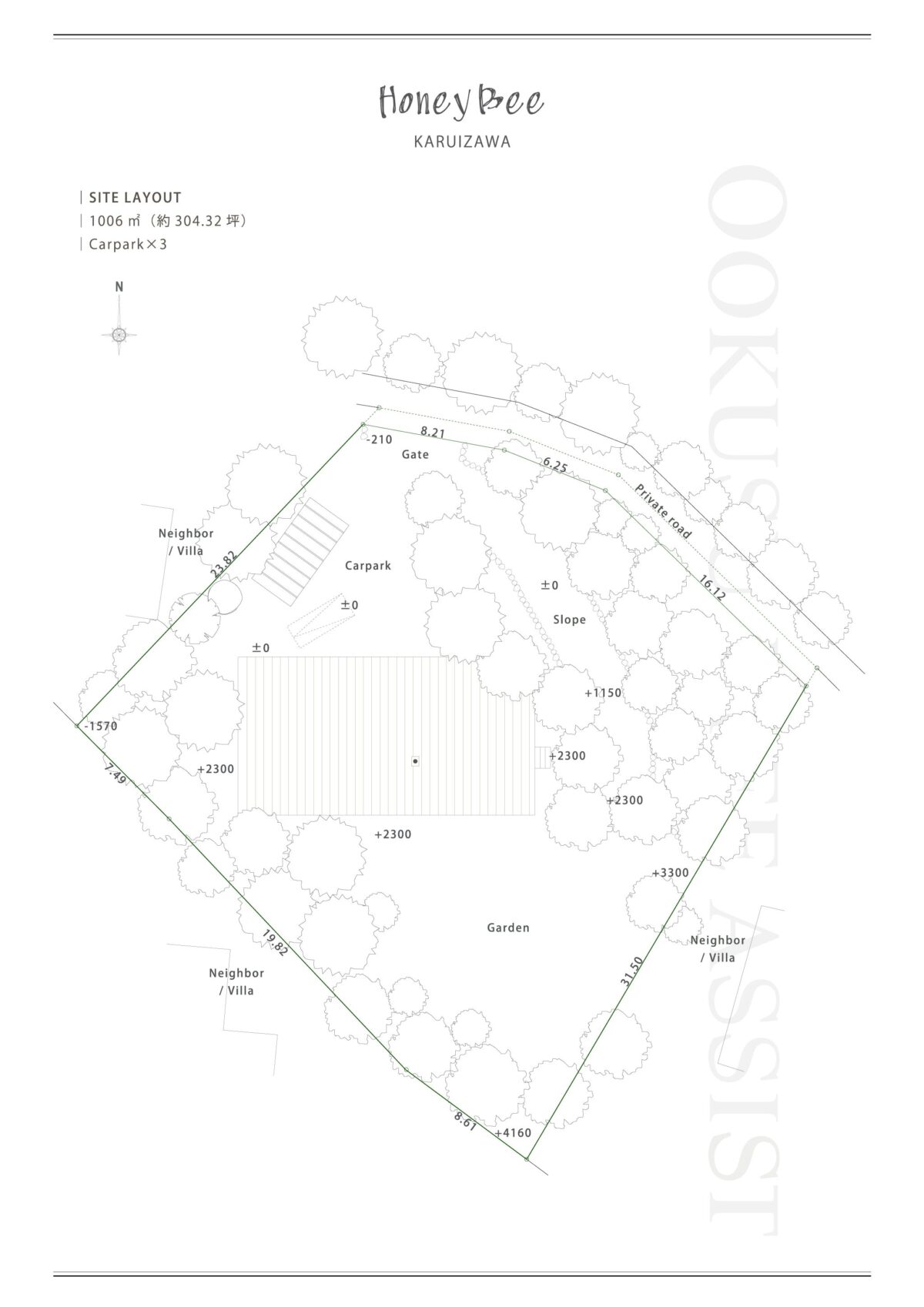 軽井沢駅から車で8分。ゆるやかな坂を登り、木洩れ日の揺れる白樺並木を抜けると、まるで森に吸い込まれるように「Honey Bee」は姿を現す。芝庭に広がる朝の光、ガラス越しに射し込むやわらかな太陽、自生する巨木の枝には、小鳥とリスが遊びに訪れる。その静けさに耳を澄ませば、森の風が家の中をゆっくりと巡っていく。
