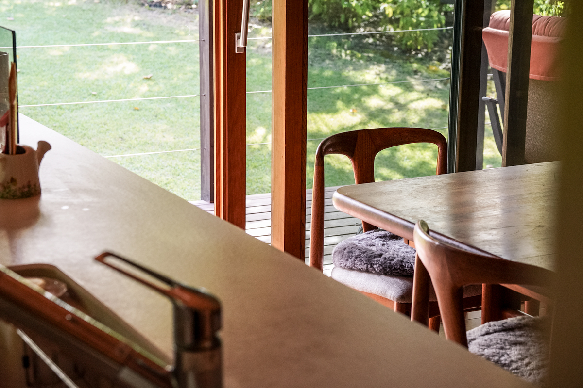 芝庭に差し込む午後の光、薪ストーブの暖かさ、ピアノの旋律が心に重なるひとときに。