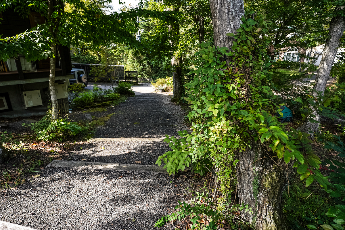 ここは軽井沢の中でも歴史ある別荘地「白樺台」。バイパスから数分、シラカバやナラ、からまつが茂る深い林に空気が一変する。敷地を歩けば、葉擦れの音に混じって小鳥たちのさえずりが響く。軽井沢駅、スーパーマーケット、グルメ通り、塩沢湖、風越公園、すべてにアクセスしやすく、非日常と日常の境界が心地よく溶け合う。このエリアは、ただ「別荘地」という言葉では収まりきらない魅力を持っている。