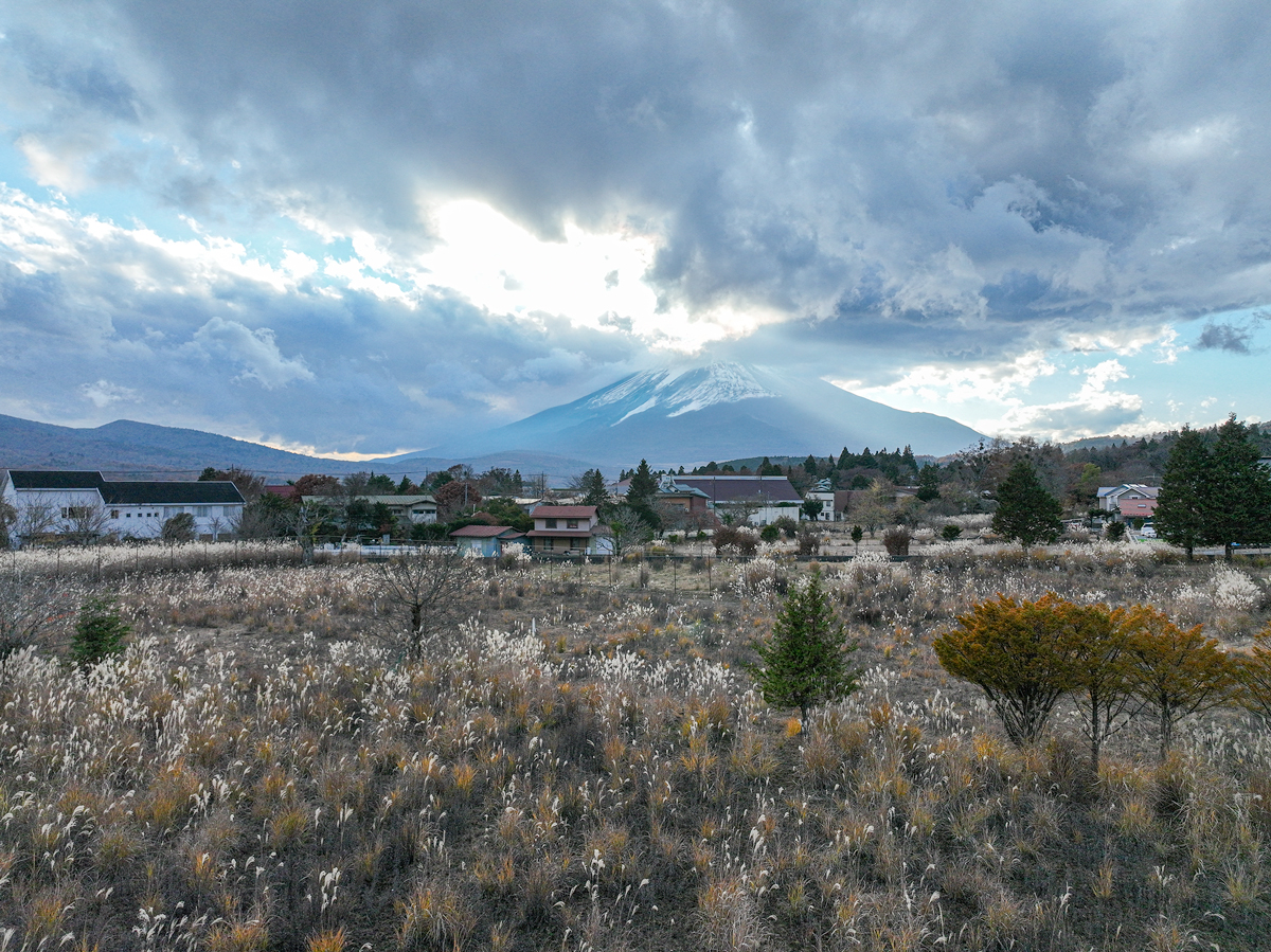 本物件の西側には、富士山の裾野から山頂までを遮るものなく一望する壮大なパノラマが広がる。周囲には山中湖を取り巻く外輪山の稜線が連なり、風に揺れる草原とともに四季折々の表情を演出する。まさに“富士の全景を借景にする”贅沢を味わえる、旅人の心を確実に捉える景色である。