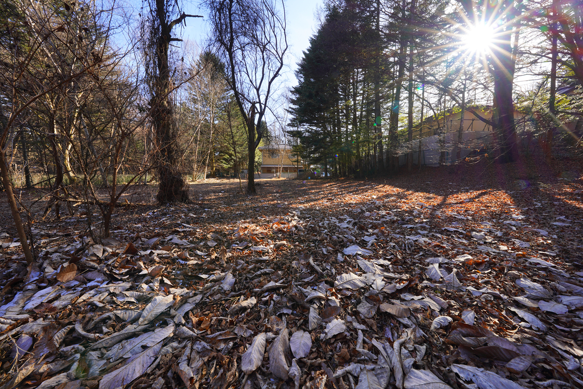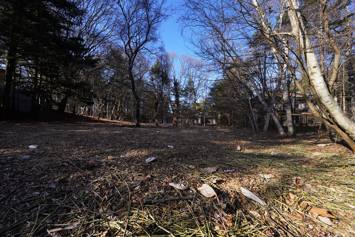約344坪にわたる敷地は見事なまでにフラットであり、建築の可能性を最大化するポテンシャルを備えている。力強くも美しい高木が敷地に深い陰影を与え、建築を引き立てる“軽井沢らしい自然の質感”を演出する。スクエア形状のため、モダン建築からクラシカルな邸宅まで、多様なデザインを品格高く受け止める包容力を持つ土地である。