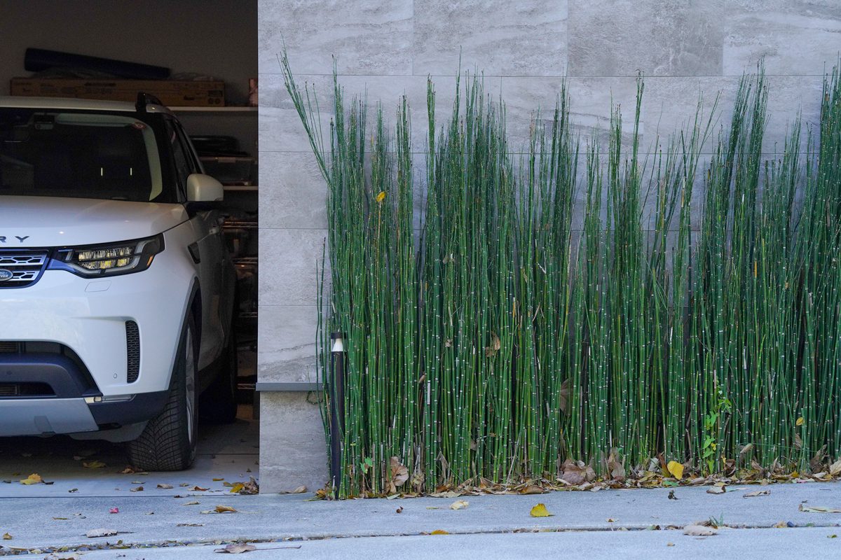 敷地内には、木々に囲まれた芝生の庭を配する。時折、リスや野鳥が訪れ、静かな朝の時間を彩る。寝室から直接庭へと出られる動線が、屋内外を緩やかにつなぐ。この庭は、邸宅全体に呼吸を与える、不可欠な存在である。