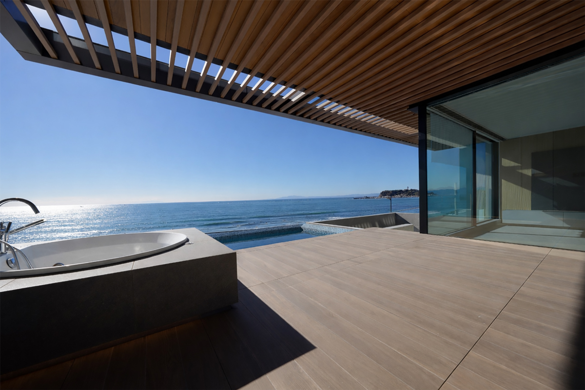 | 特徴 | 約50畳相当の広さを有するLDK 相模湾を望む大開口 テラスプール サウナ 地下レクリエーションルーム 居住用・セカンドハウスいずれにも対応可能なスケールと設計 |