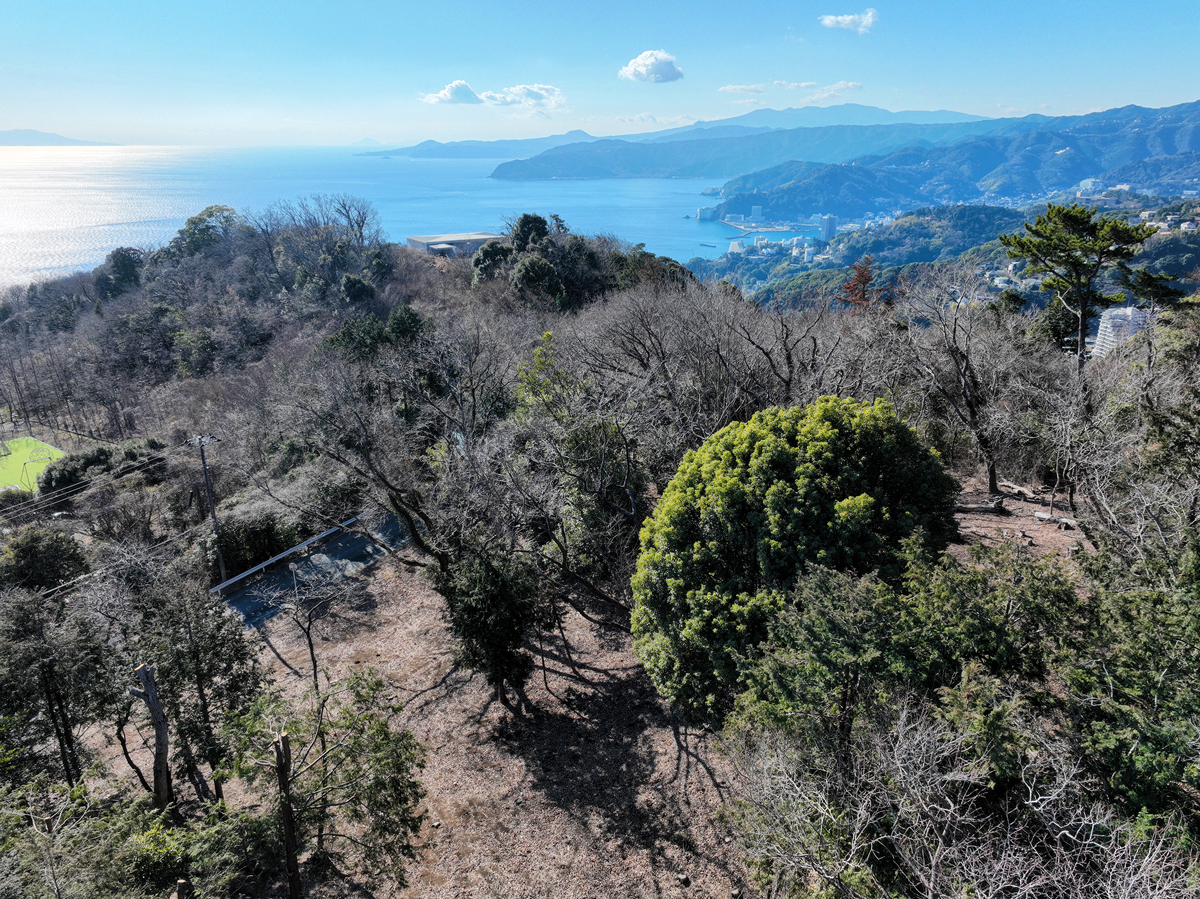 熱海・伊豆山の深い森に抱かれ、相模湾を見渡す大地である。視界の先には伊豆大島、初島、伊豆半島が連なり、海と島影が日常の背景となる。7,408㎡という圧倒的なスケールに、天然温泉を引き込める可能性が重なる。ここは“土地そのもの”が体験をつくる資産である。