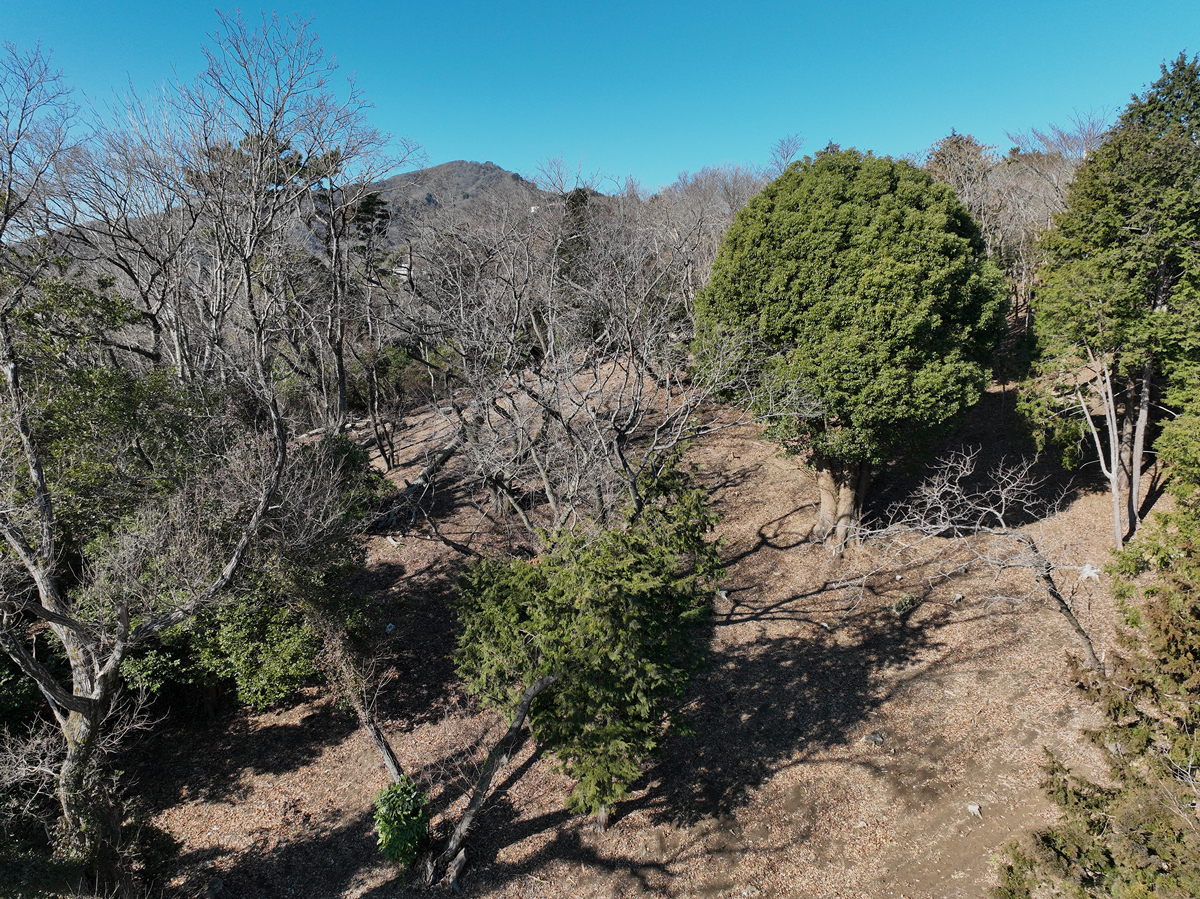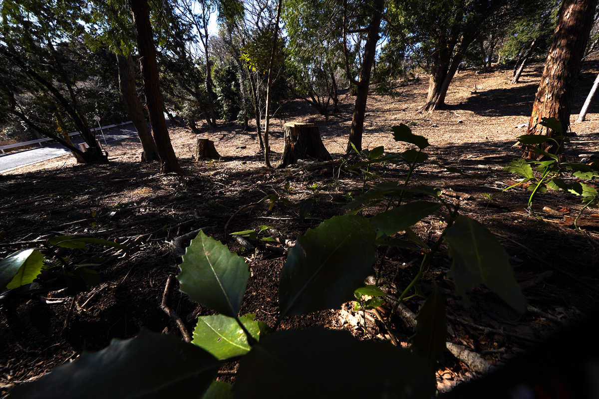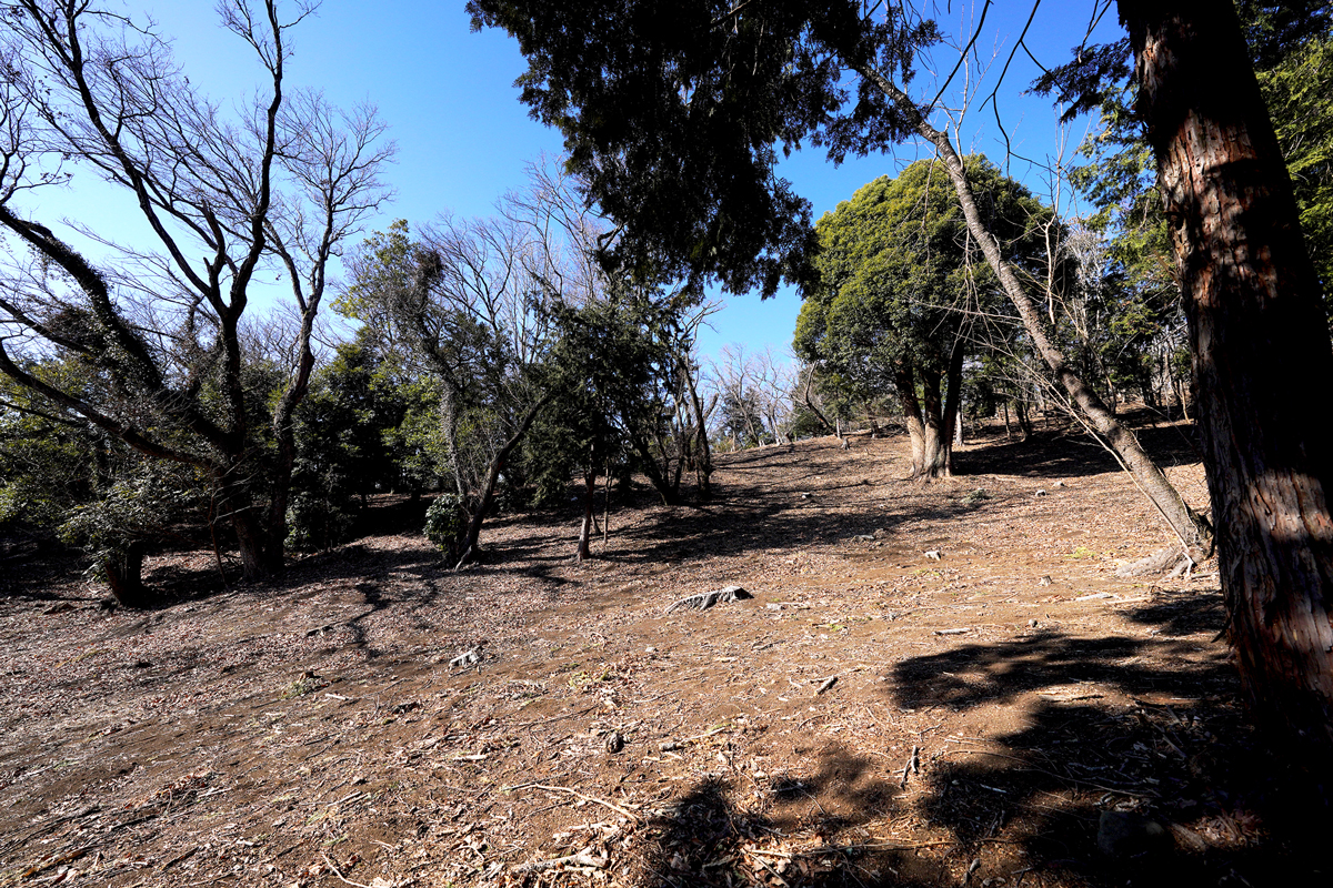 敷地内には自生する大木が育ち、森の厚みがそのまま資産の質となる。周囲の道路から高い位置にあるため、視線が届きにくく、プライバシーが保たれる土地である。