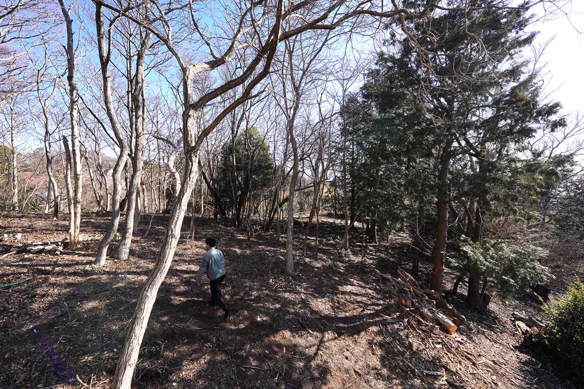 敷地は2,200坪を超える。尾根と谷がバランスよく配されたアンジュレーションがあり、平坦地では得られない立体感のあるランドスケープを成立させる。