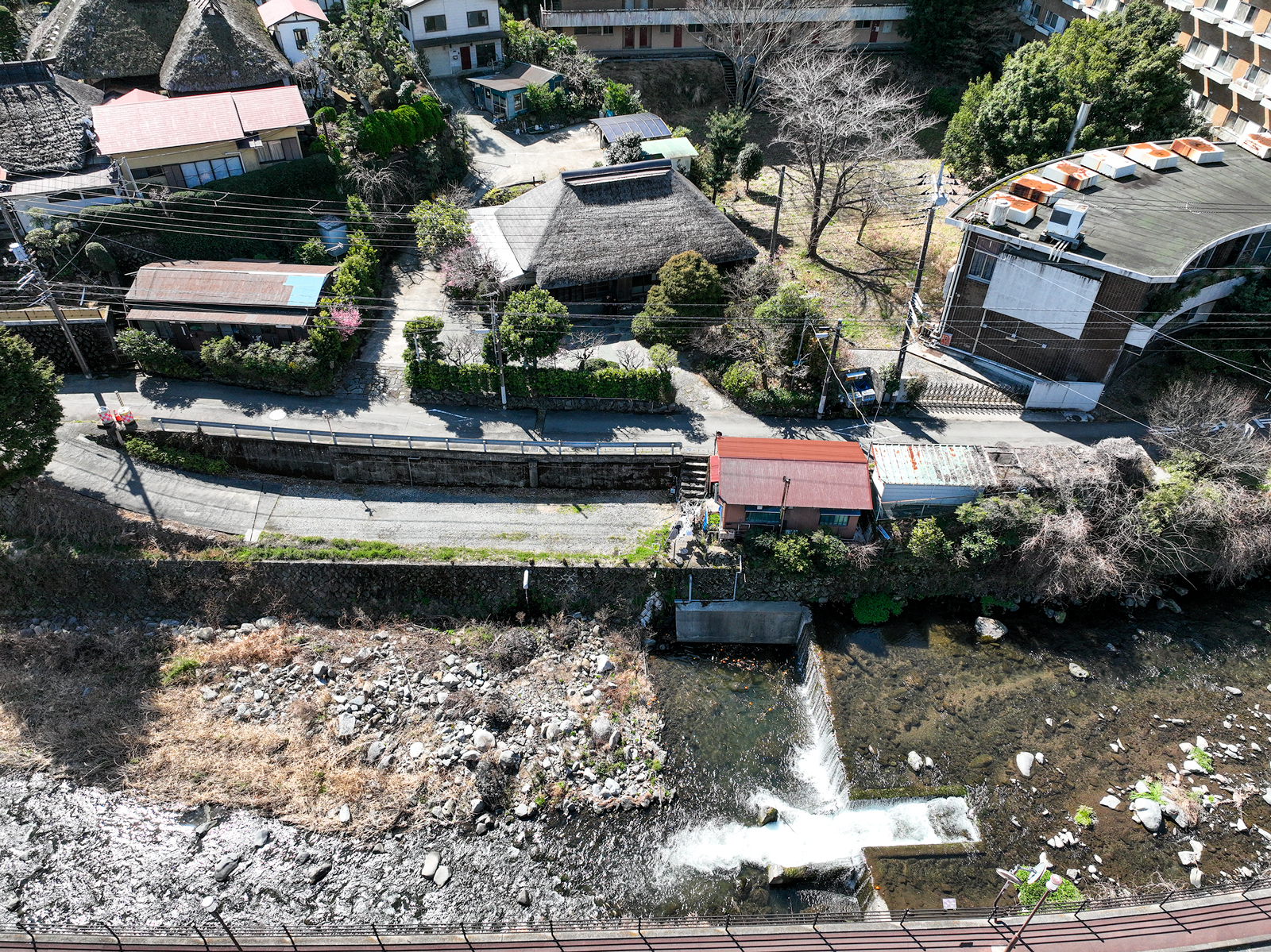 千歳川のせせらぎに寄り添う、明治の茅葺古民家。