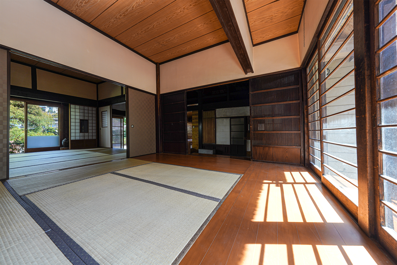 太い梁と古材が今もなお本物の時間を宿し、南側に残された余白は、この場所の未来までも美しく想像させます。
