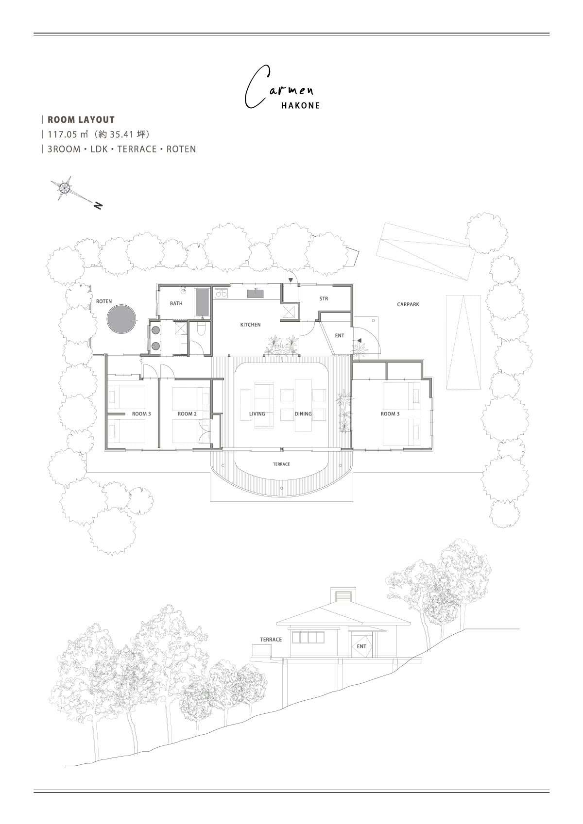 箱根・二ノ平の森に包まれて佇む「CARMEN」。