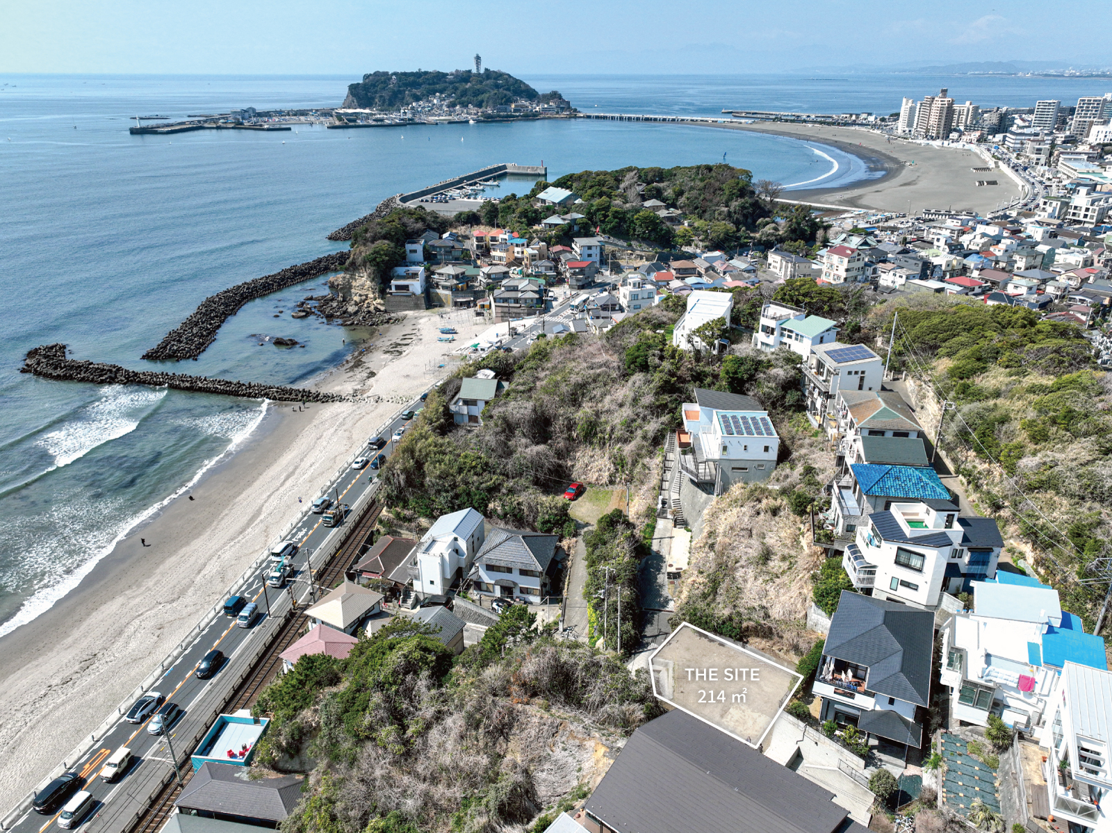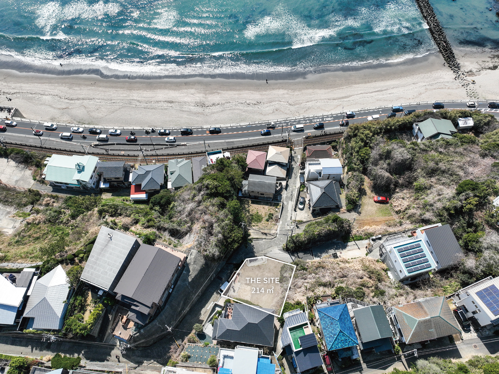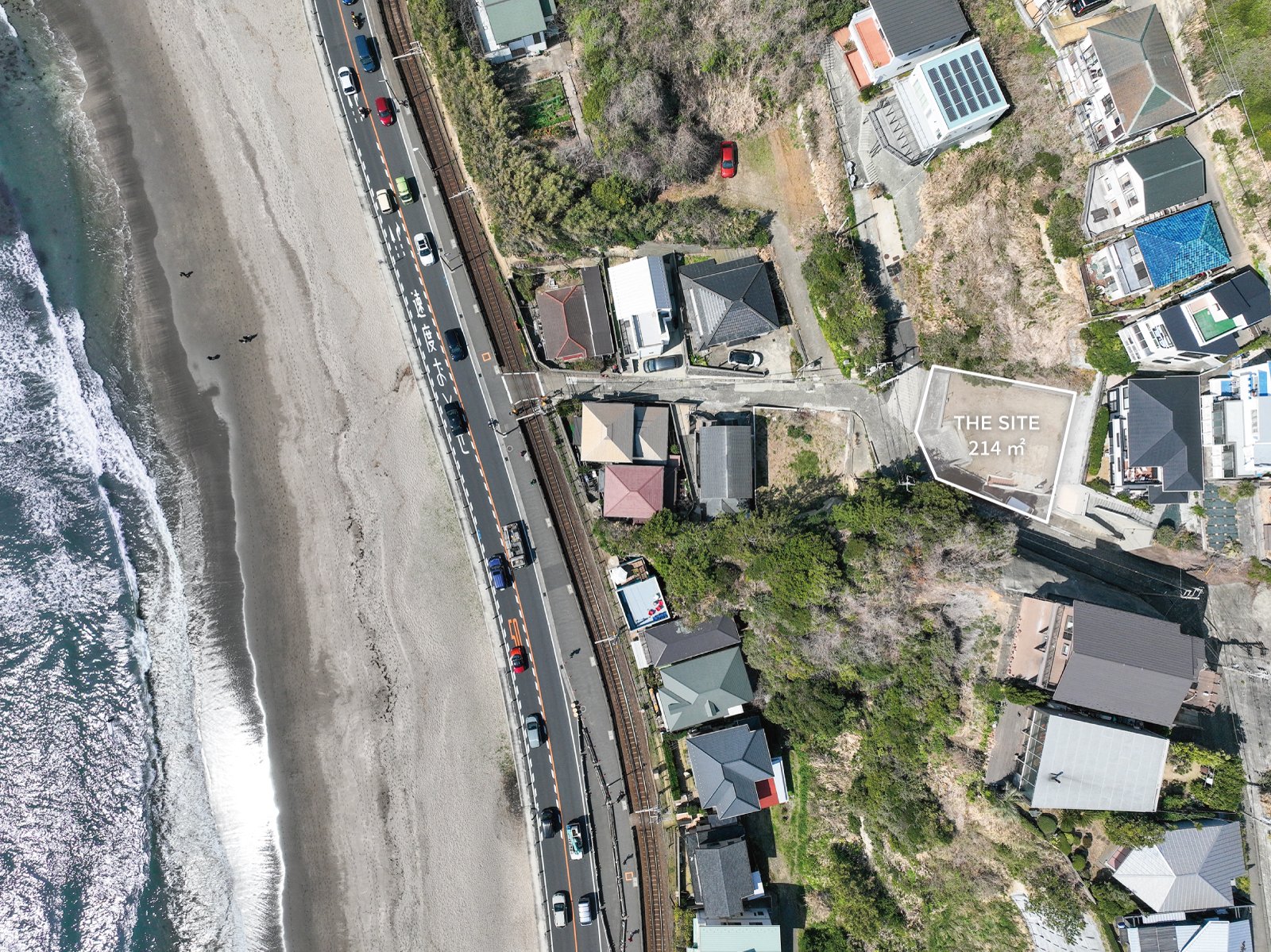 敷地はコーナーに位置しているため、海側の視界が開け、相模湾を水平に望みながら、足元には七里ヶ浜のビーチを見下ろすことができます。