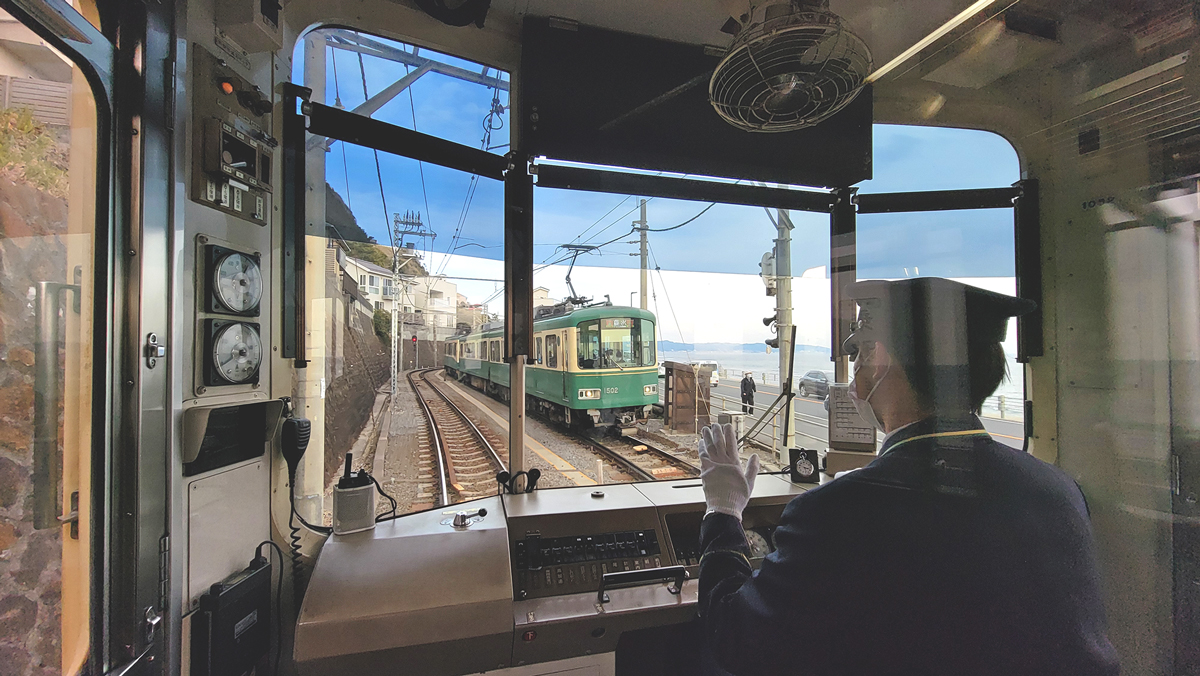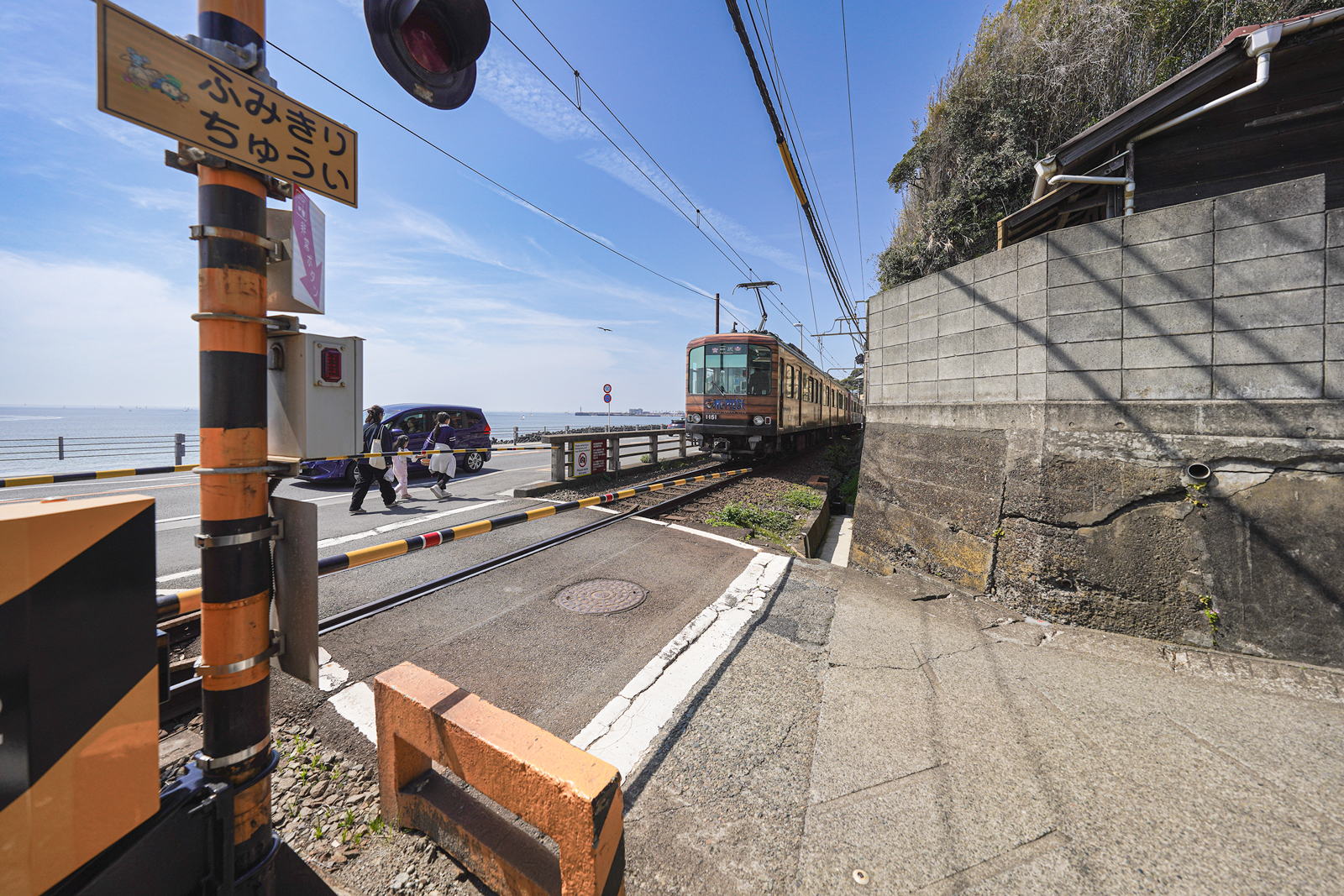江ノ電が商店街の真ん中を走り抜け、人や車と道を譲り合いながら進む風景にも、この町らしい風情があります。