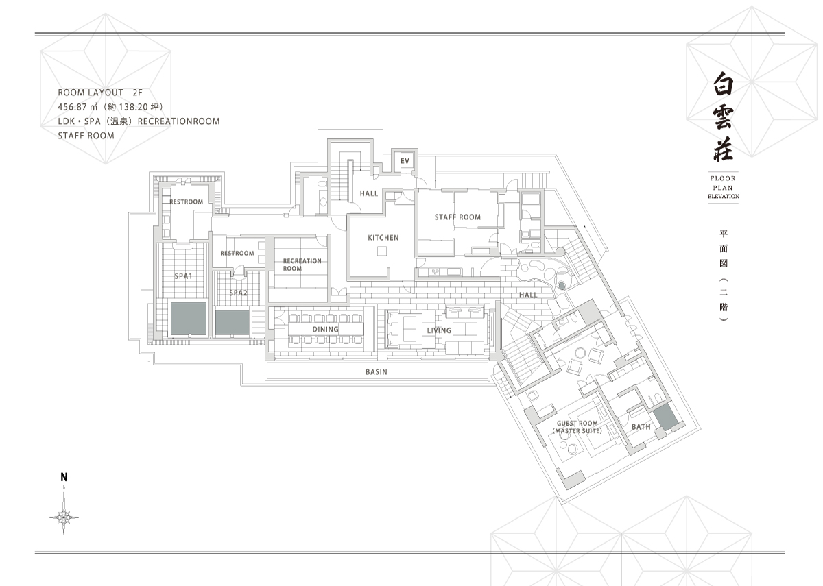 間取り / 客室5部屋+スタッフルーム+大浴場+ジム