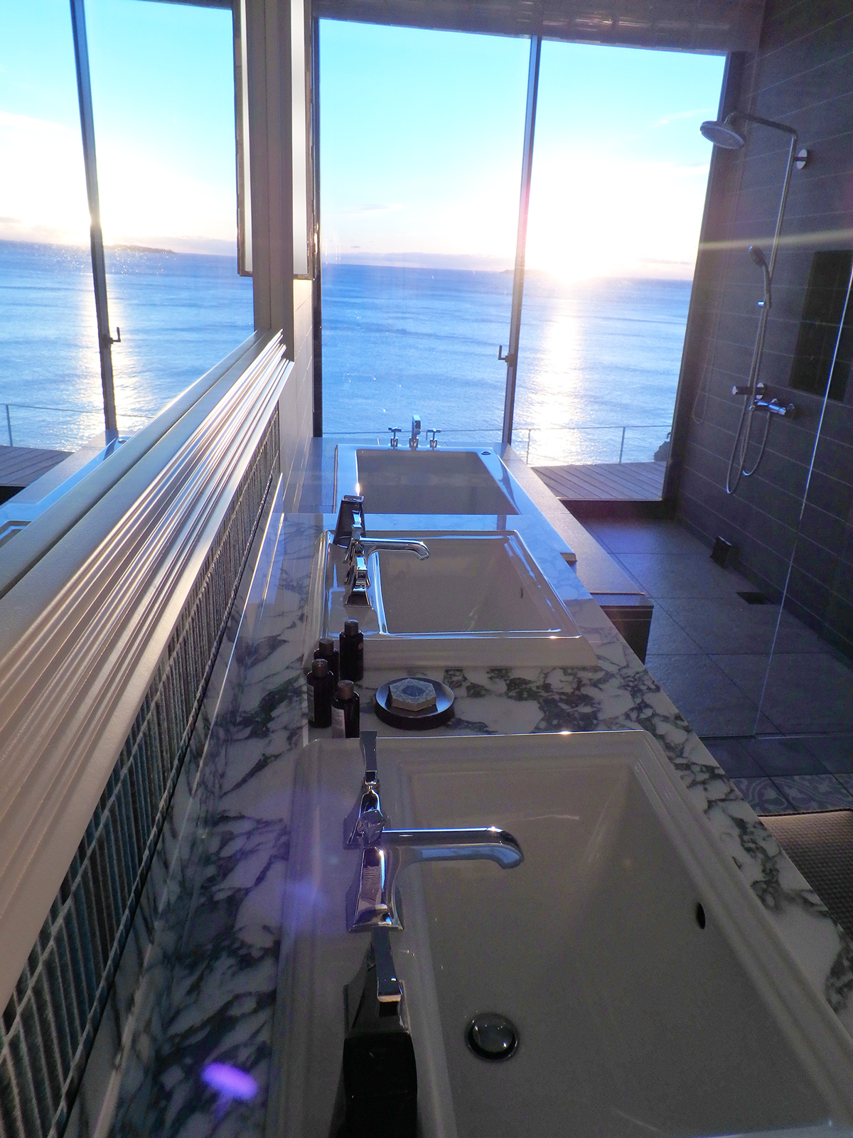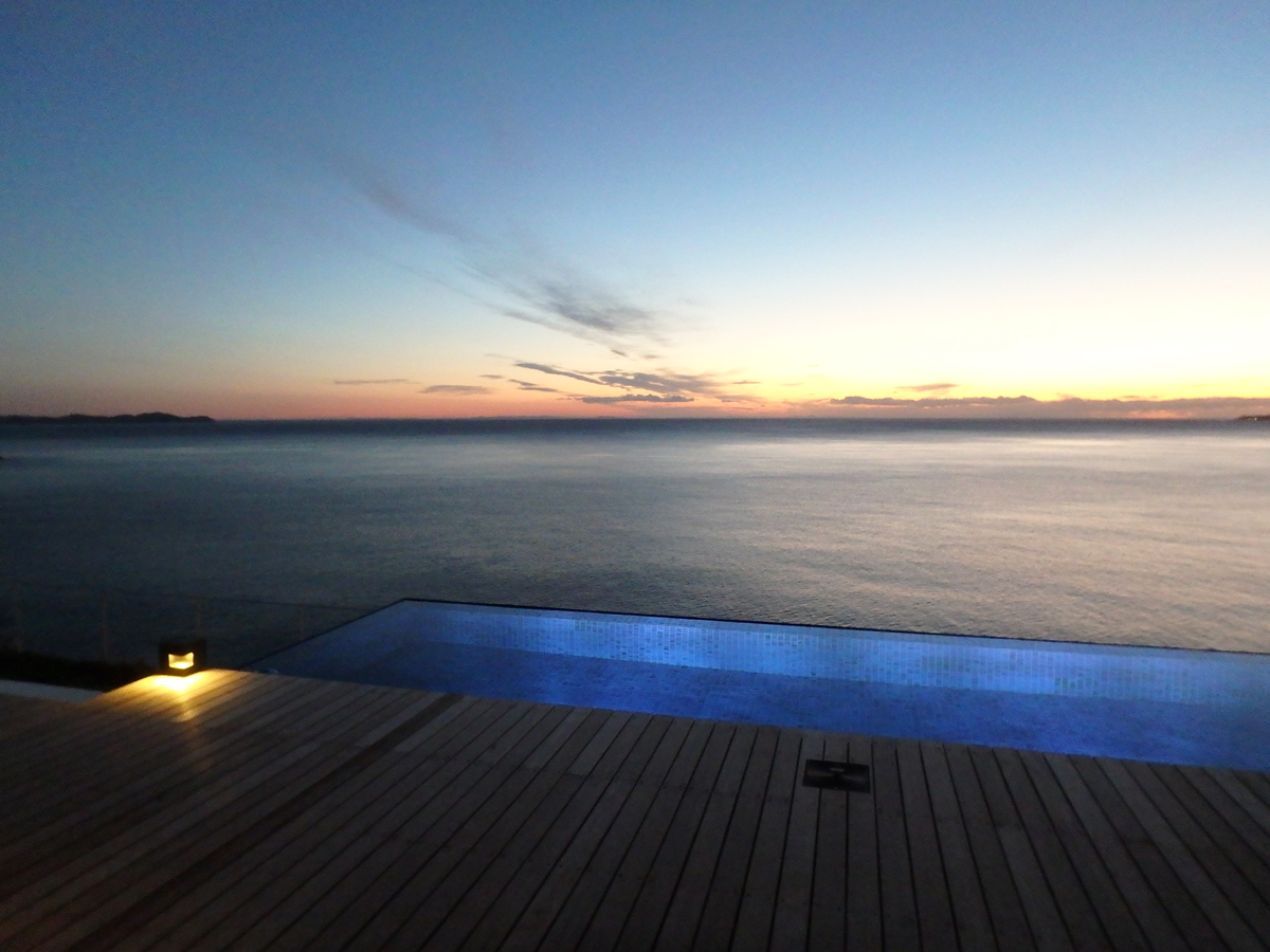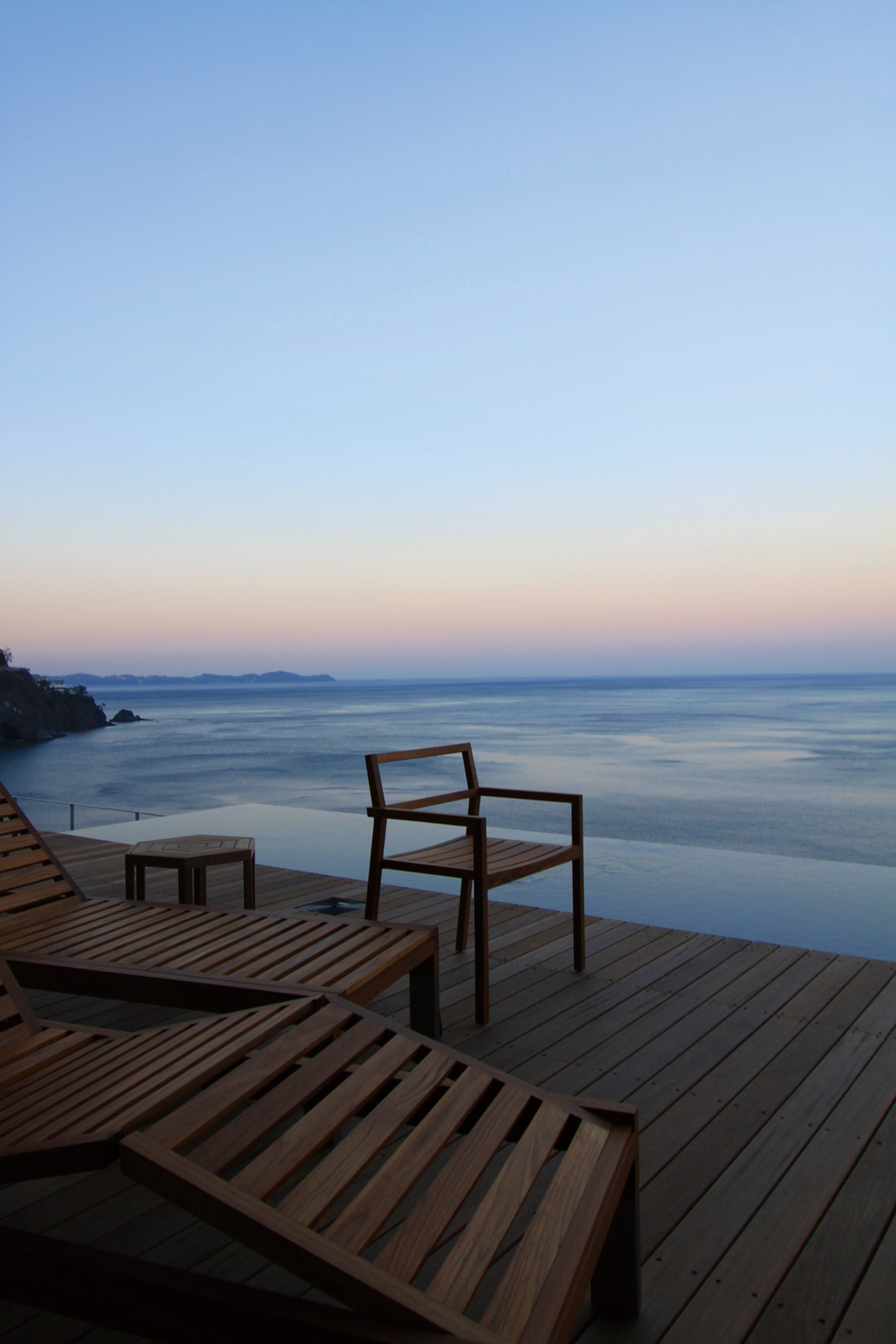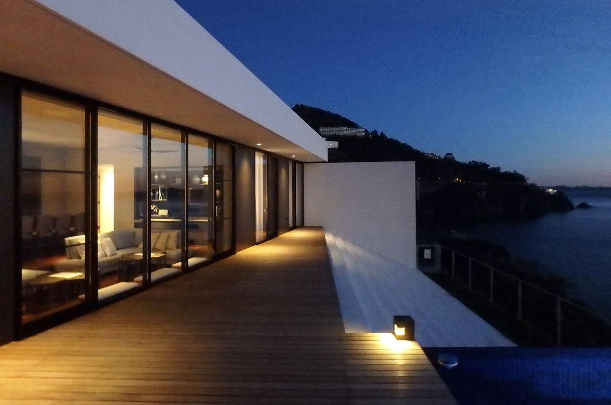 熱海市街地から車で西へ約10分。小さな入江を囲む断崖にこのユニットがある。純白の建物はアメリカ西海岸の上質なヴィラを思わせる。扉を開けユニットの中へ入った瞬間、惜しげもなく広がる絶景を目の前に高揚感を覚える。打ち寄せる波の音とやわらかな風の心地よさにさそわれテラスへ、プール脇のチェアーに腰掛けたまま時間を忘れて過ごしてしまう心地よさだ。自然が織りなす幻想的なプログラムを前に身も心もときほぐす極上のスペシャルスイート。